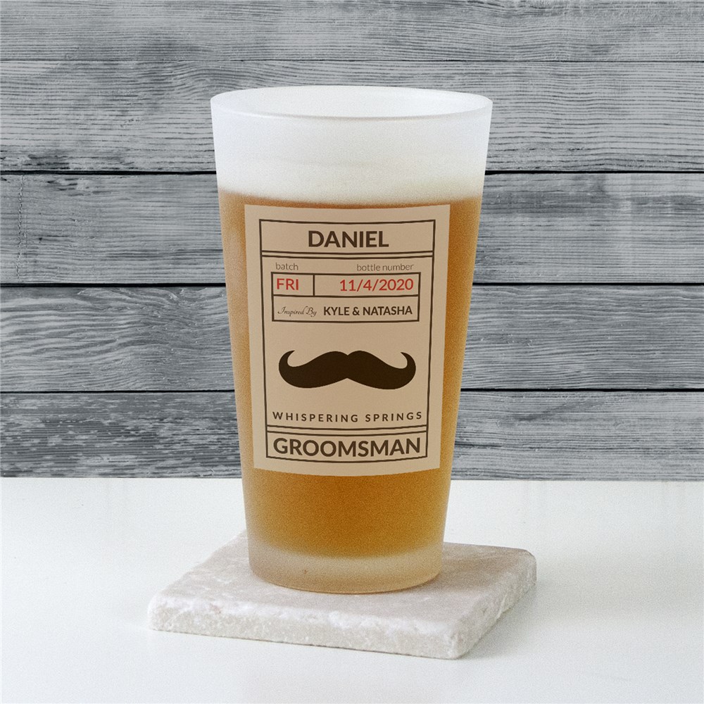 Give a unique gift to all the special guys that are standing by your side on your wedding day with our Personalized Groomsmen Frosted Pint Glass.