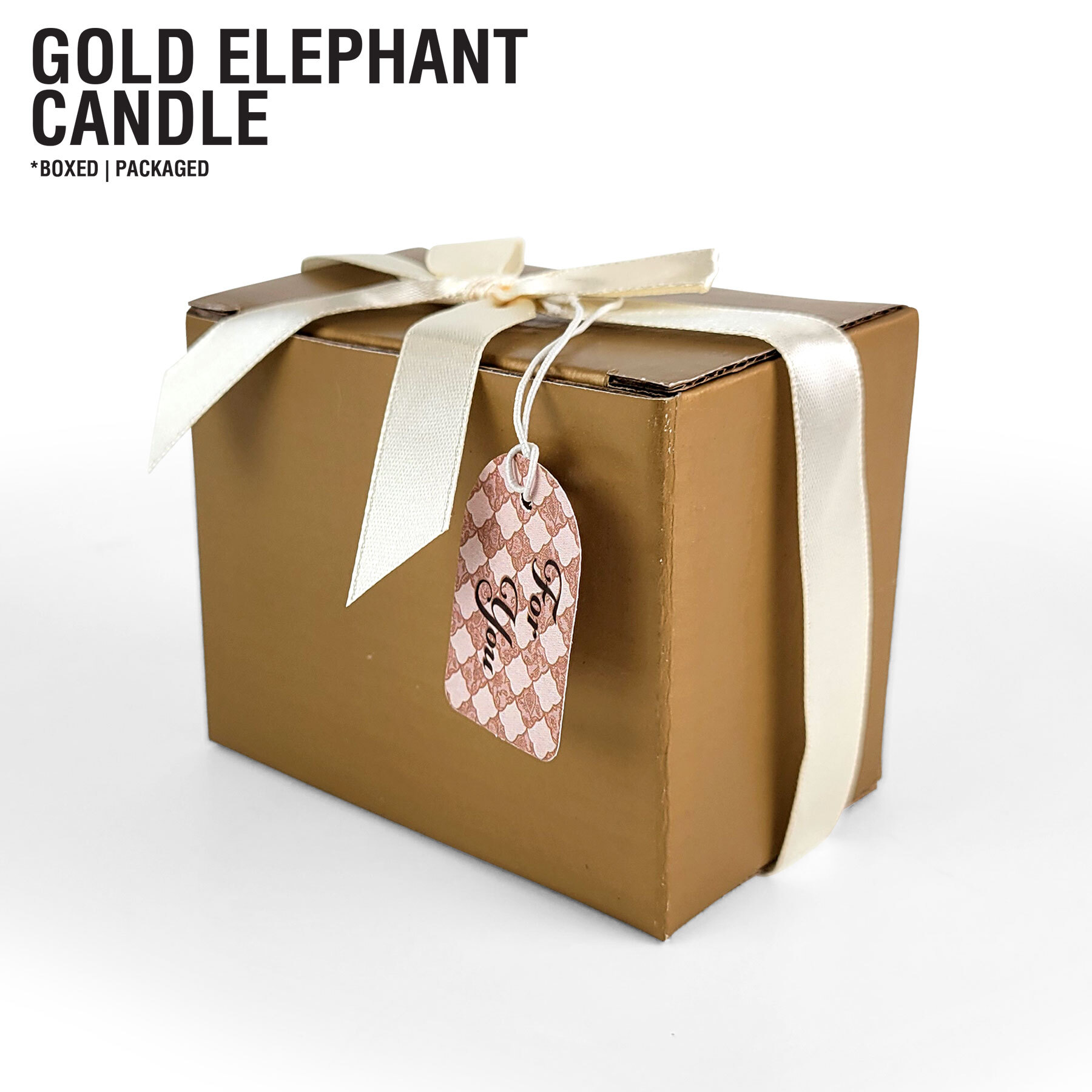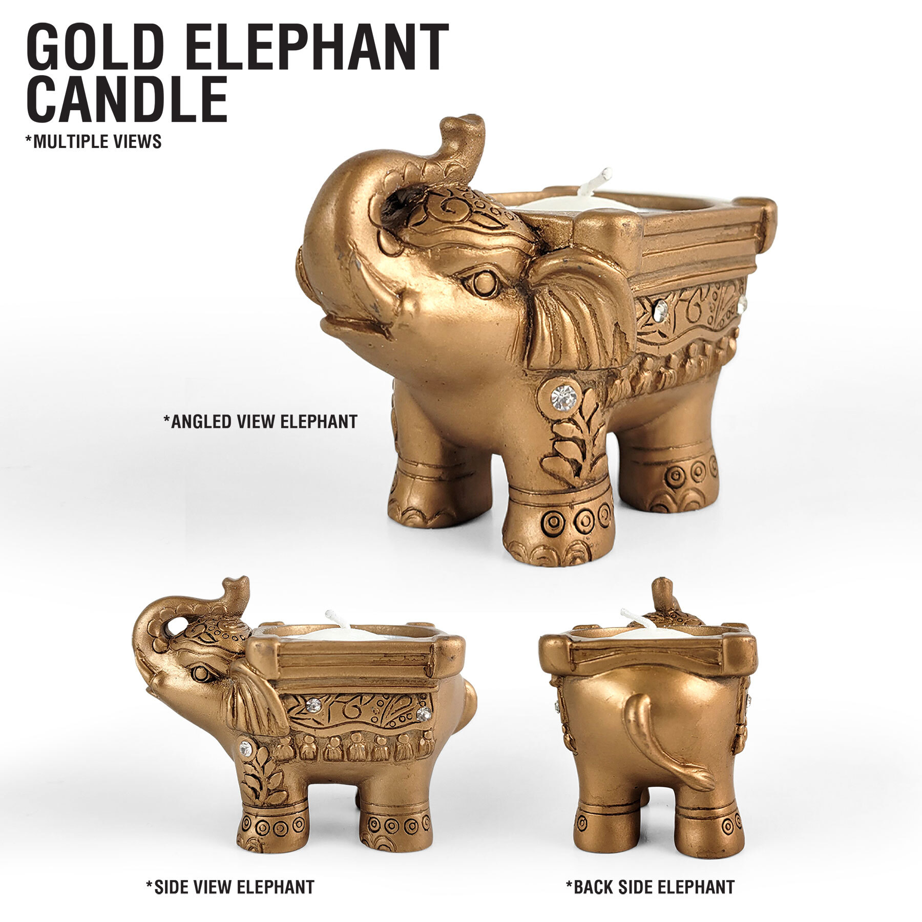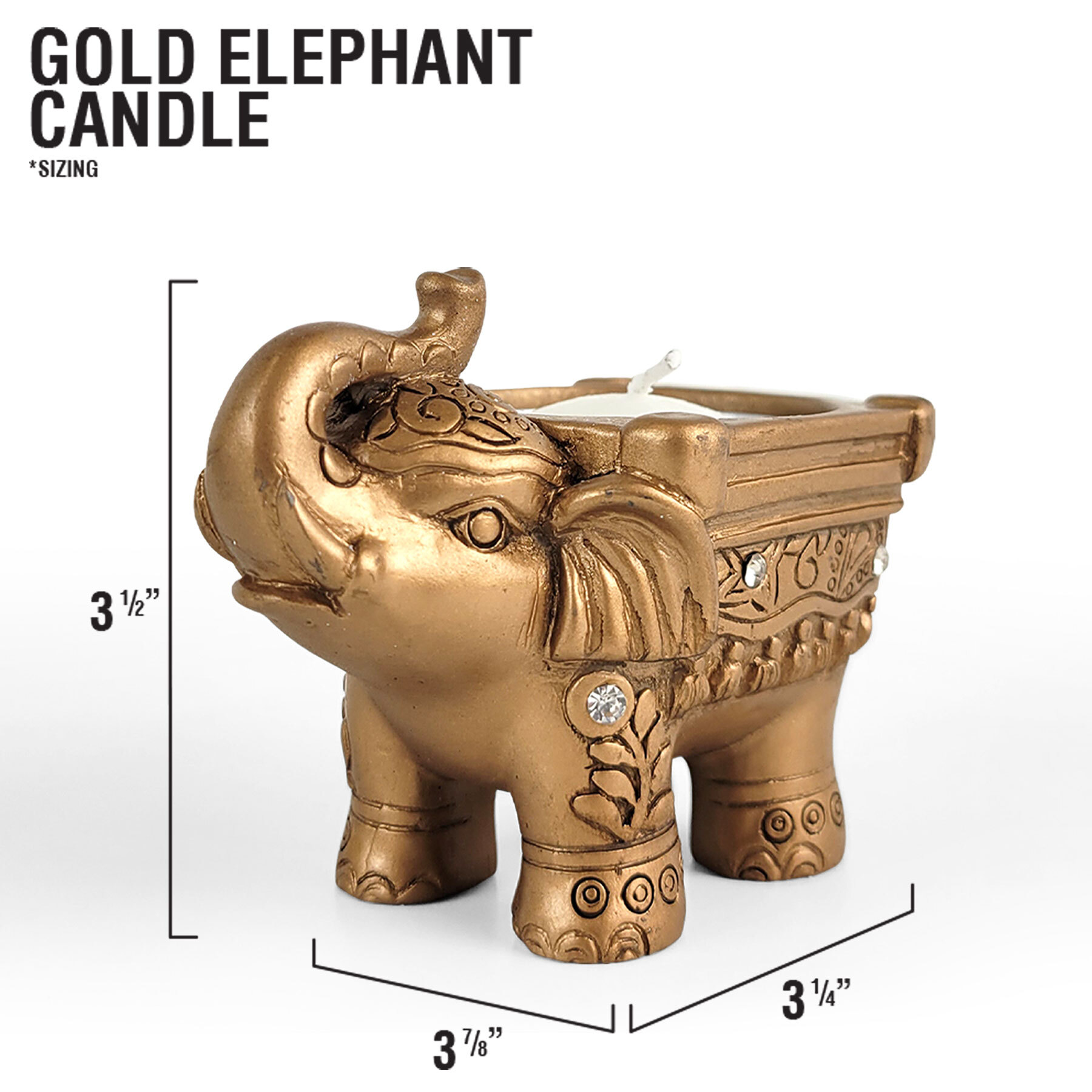 The Gold Elephant Candle will light up any special event with the opulent gold and clear rhinestones. The east Asian design candle is a perfect way of offering good luck to your wedding event and makes a beautiful statement piece to your table. The elephant is made from a solid block of poly resin and gold hand painted finish. The elephants hold a round white tealight candle which is included.